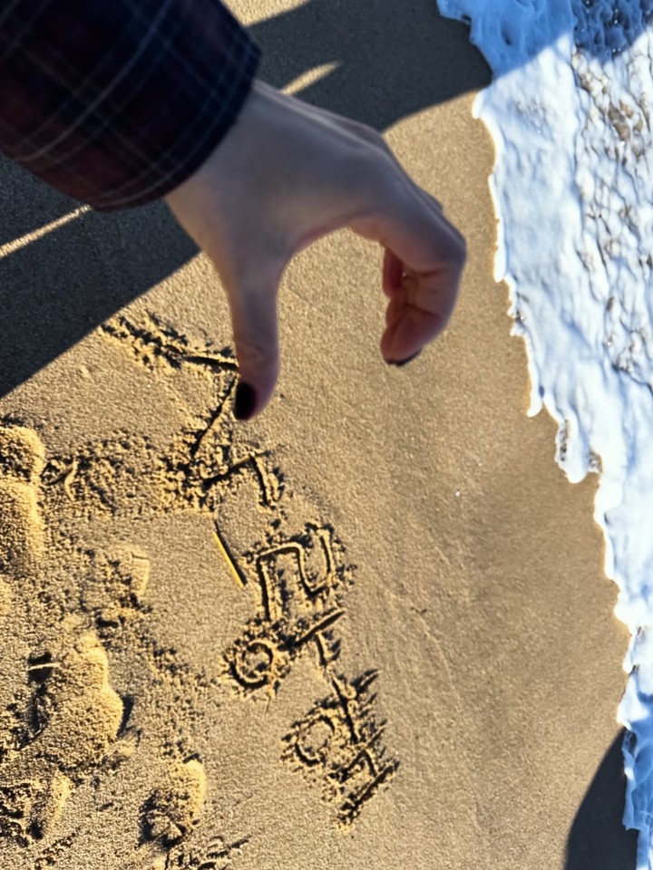 공개된 사진에는 차가운 해변 바람을 맞으며 미소 짓는 윤은혜의 모습이 담겼다. 손으로 하트 모양을 그리거나, 모래 위에 “사랑해”라는 메시지를 직접 남긴 모습이 눈길을 끌었다.