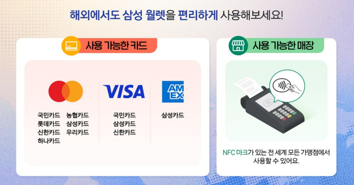 이번 서비스 대상은 삼성카드에서 발행한 아멕스 카드 소지자부터 우선 적용된다. 삼성전자는 향후 지원 카드사를 순차적으로 확대할 방침이다. 사용자는 근거리 무선통신(NFC, 10cm 이내 가까운 거리에서 데이터를 주고받는 비접촉 통신 기술) 단말기가 설치된 전 세계 아멕스 가맹점에서 스마트폰을 태깅하는 방식으로 결제할 수 있다. 해외여행이나 출장이 잦은 사용자들이 실물 카드를 휴대한 채 번거롭게 결제 과정을 거치지 않아도 되는 편의성이 확보됐다.