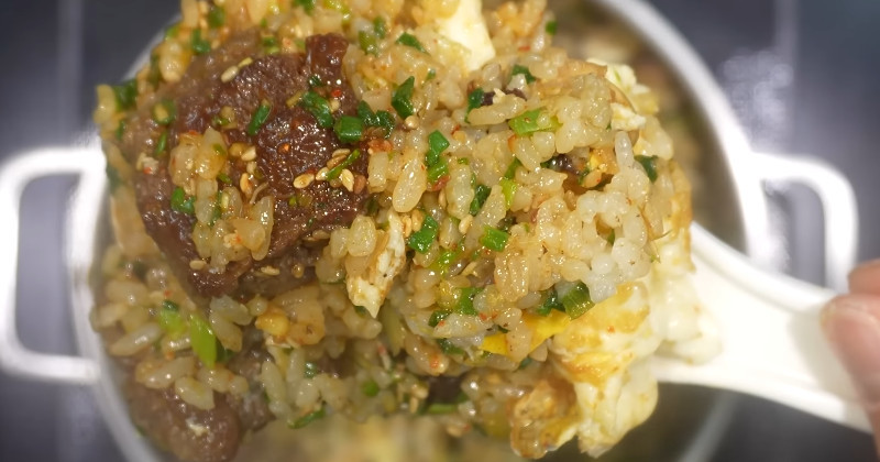 스테이크는 복잡하게 조리할 필요가 없다. 소고기 등심이나 부채살처럼 기름기가 적당한 부위를 소금과 후추로만 간해 센 불에서 빠르게 굽는다. 겉면이 익으면 불을 줄여 속까지 천천히 익히고, 팬에서 꺼낸 뒤 2~3분 정도 레스팅을 거친다. 이 과정을 거쳐야 고기의 육즙이 빠지지 않고 밥과 섞였을 때도 퍽퍽해지지 않는다.