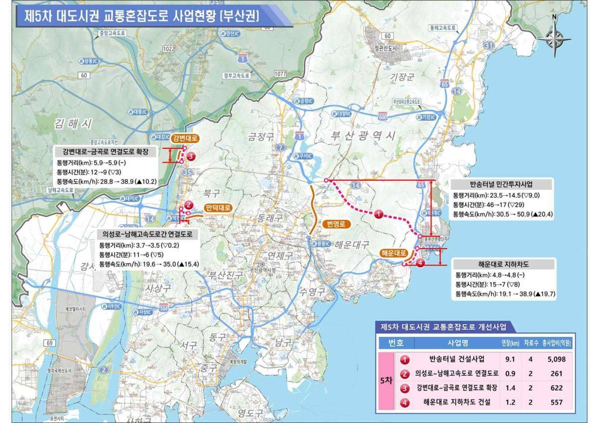 이번 5차 계획의 가장 큰 특징은 정부의 국가 균형성장 추진 전략인 ‘5극 3특’ 체제에 발맞춰 지방권 투자 규모를 대폭 확대했다는 점이다. 총 21개 사업, 54.7km 구간에 걸쳐 5년간 국비 1조 1,758억 원이 투입될 예정인데, 이는 지난 4차 계획 당시 6,903억 원이었던 지방권 투자액을 9,216억 원으로 약 33.5% 증액한 규모다. 정부는 단순히 도로를 늘리는 데 그치지 않고 BRT, 도시철도, 광역도로 등 기존 광역 교통체계와의 연계성을 극대화해 시너지 효과를 노리겠다는 전략을 세웠다. 이를 통해 도심 내 주요 병목 구간을 해소하고 단절된 도로망을 연결함으로써 도시 전체의 교통 흐름을 근본적으로 개선할 방침이다.