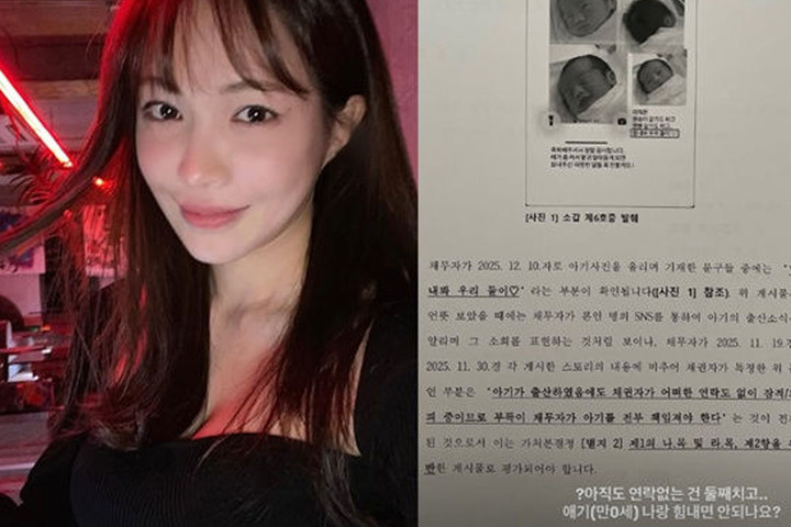 서류 내용에는 '2025년 12월 10일 자 아기사진과 함께 본인 명의로 소회를 밝히는 게시물에 대해, 실제로는 아기 출산 후 친부가 연락 없이 잠적해 서민재가 모든 양육을 책임지는 상황' 등이 명시돼 있었다.