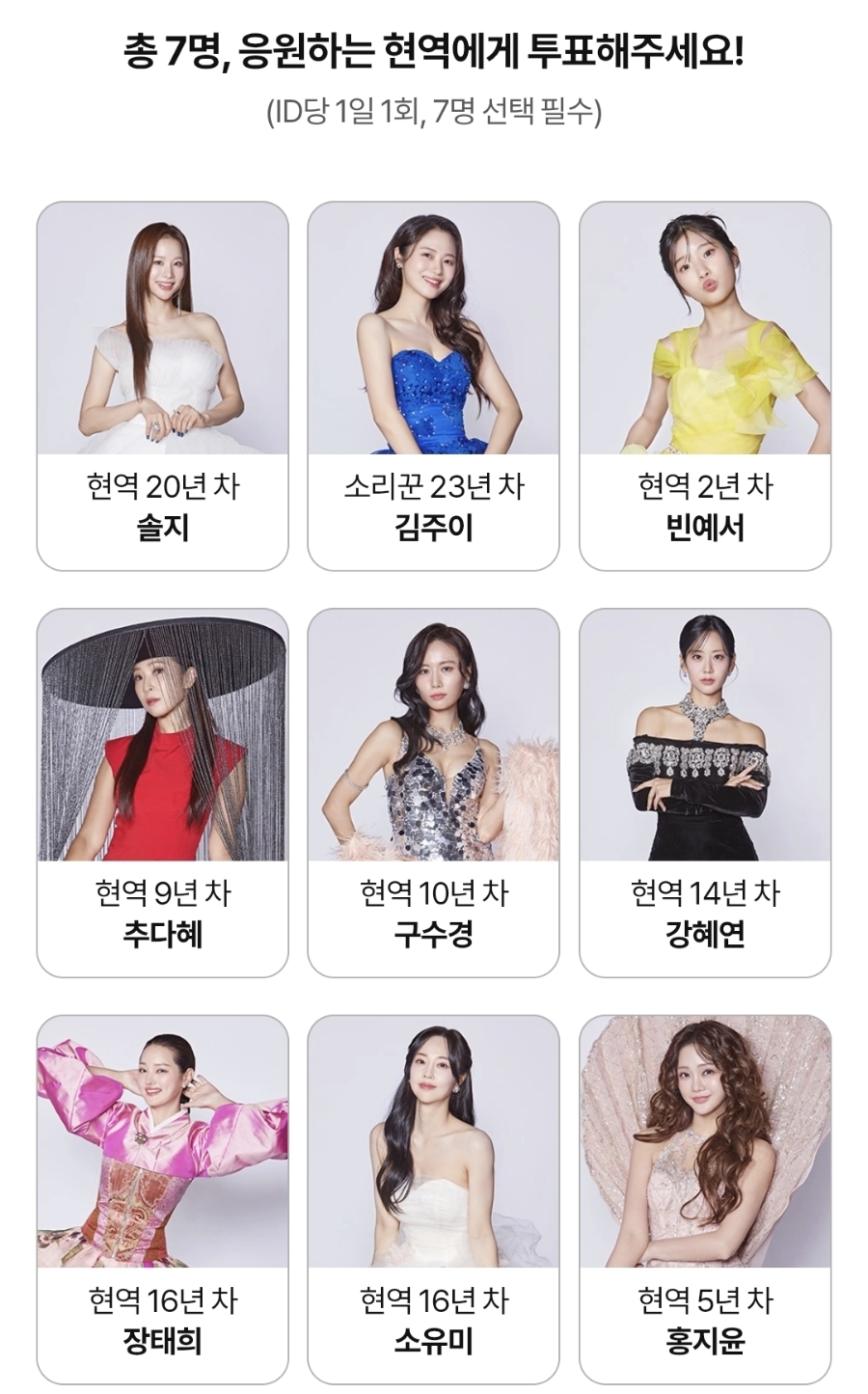 응원하는 7명의 현역 선택