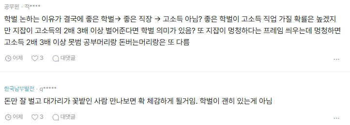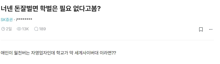 돈 잘벌면 학벌은 필요 없다고 봄?