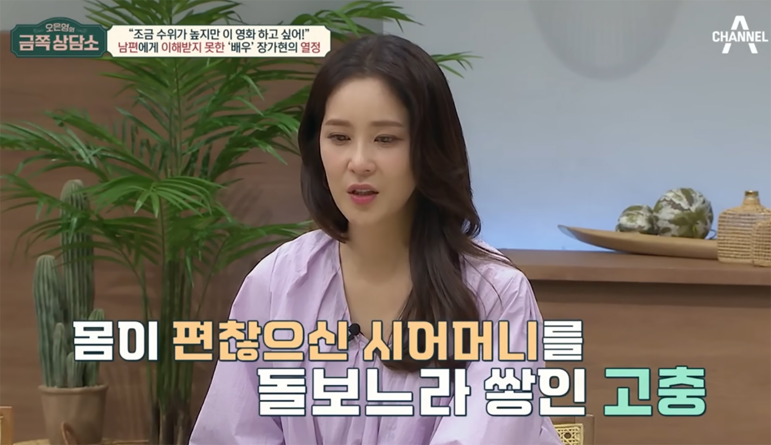 이혼의 배경에는 단순히 영화 촬영 문제만 있었던 것은 아니다. 장가현은 신혼 초부터 아주버님, 시어머니와 함께 살며 10년 넘게 와병 중인 시어머니를 수발하는 등 독박 살림과 간병을 도맡아 왔다.