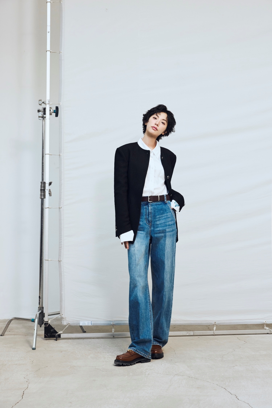 화보 속 나나는 블랙 테일러드 재킷과 데님 팬츠를 매치해 절제된 실루엣 속에 자연스러운 긴장감을 더했으며, 레더 아우터와 롱 브라운 스커트, 팬츠 레이어드 조합으로 도시적인 무드를 완성했다. 구조적인 블랙 아우터와 유연한 소재의 팬츠 스타일링은 대비를 이루며, 프리 스프링 시즌 특유의 균형감을 섬세하게 드러냈다.