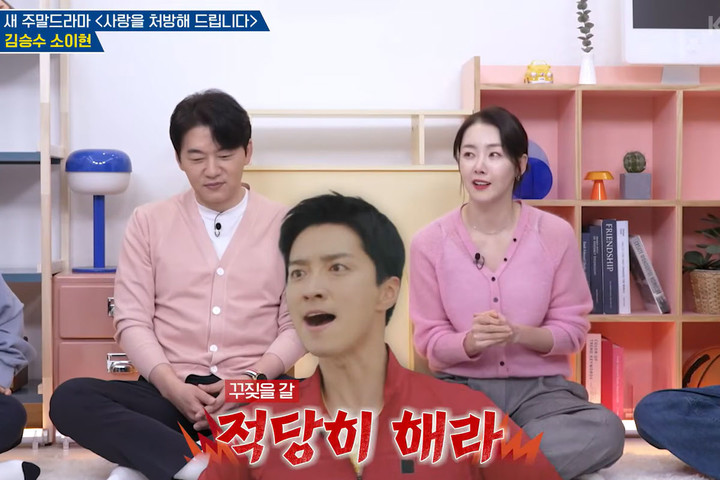 함께 출연한 이들은 인교진의 질투심에 대해 언급하며 “사랑이 넘치는 스타일”이라고 이야기를 이어갔다. 소이현은 “진한 멜로 연기가 있을 때면 남편이 해당 드라마 부분은 아예 건너뛰곤 한다”며 “가끔 시청하게 될 때는 ‘적당히 해라’라는 문자가 온다”며 인교진의 솔직한 반응을 전했다.