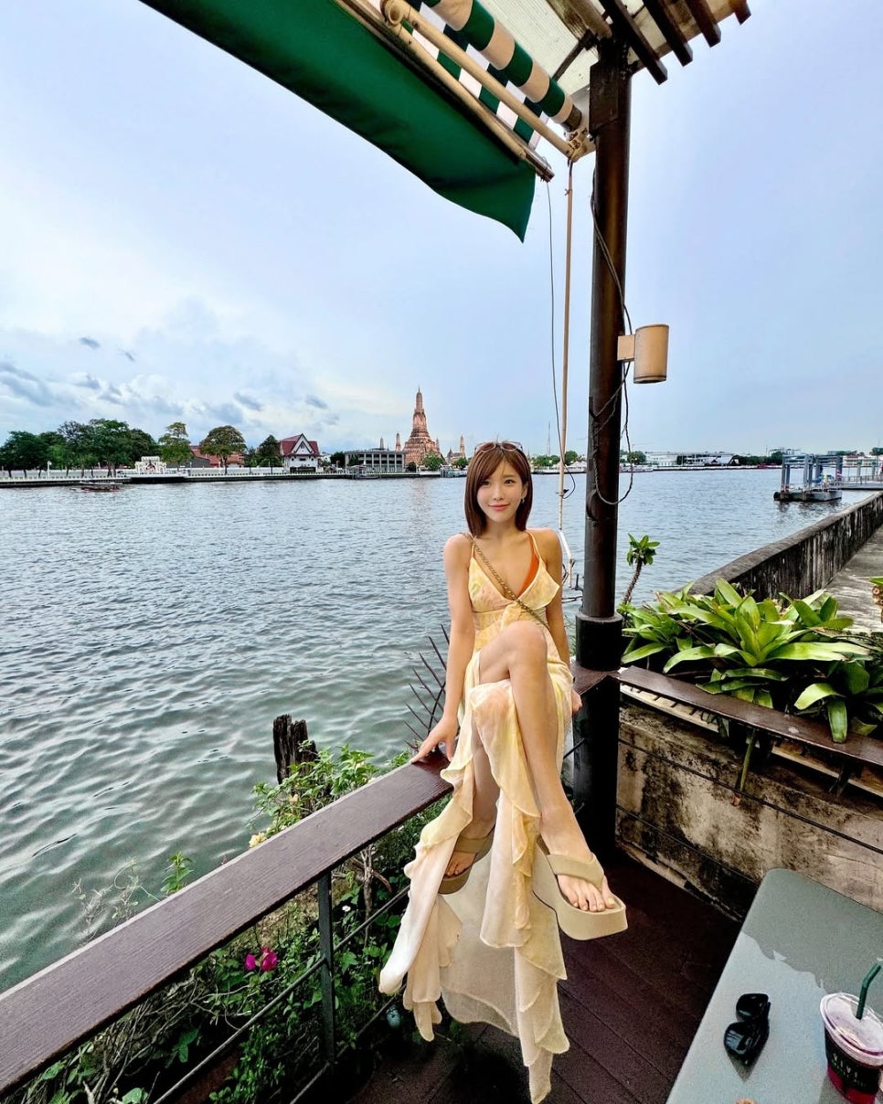 🌊 차오프라야 강변에서 빛난 골드 드레스
