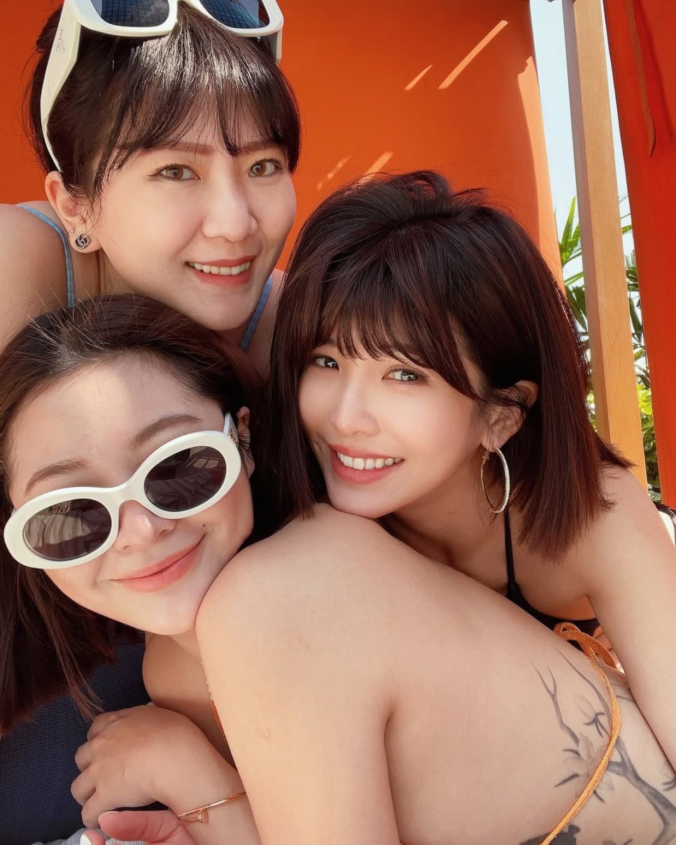 세 번째는 친구들과 함께 찍은 비키니 사진이었다.