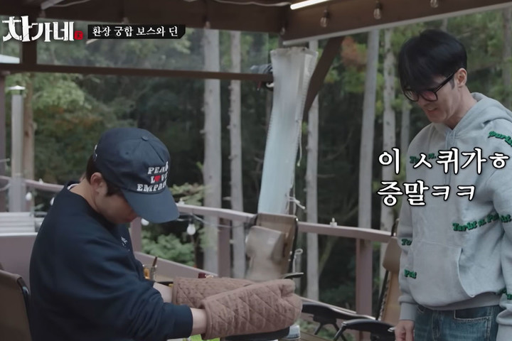 딘딘은 버너 세팅 노하우를 전수하며 “쉽지 않냐”고 말했고, 차승원은 “이 놈의 OO가 정말”이라고 반응했으나, 금세 요리 방법을 묻는 등 적극적으로 배우는 태도를 보였다.
