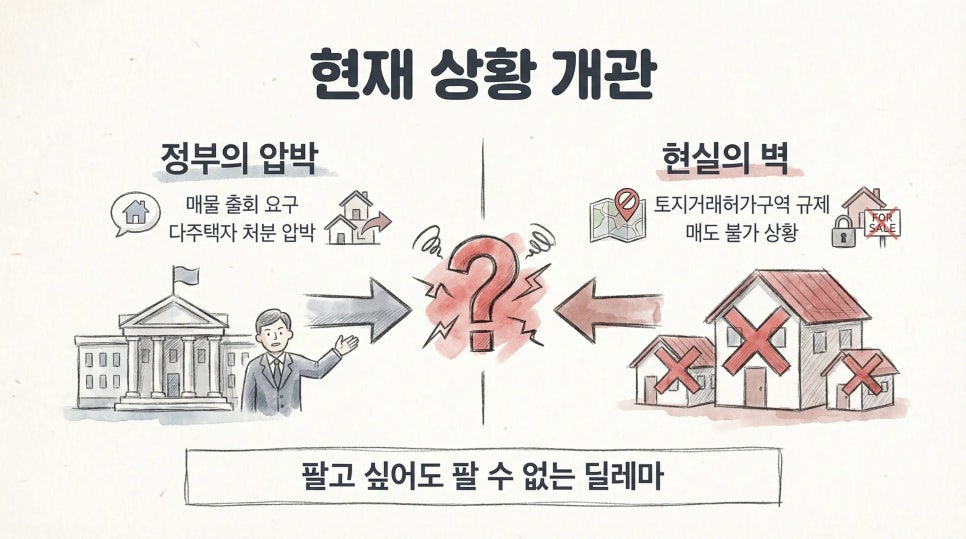 "매수 대기자가 있어도 거래 성사 불가… 정부의 매도 압박과 거래 규제가 충돌"