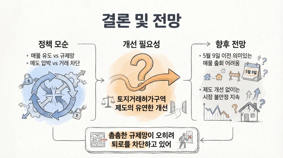 토지거래허가구역 제도가 유연하게 개선되지 않는다면 5월 9일 전까지 유의미한 매물 출회를 기대하기는 어려워 보인다.