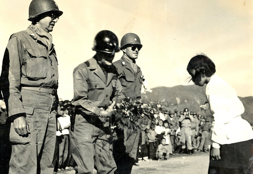 미군 장교들은 “당신들의 조상이 우리를 살렸듯, 우리가 미래를 돕겠다”며 학생들과 기념촬영한다.