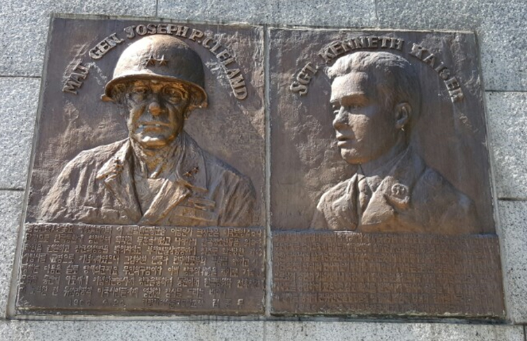 학교 정문엔 클리블랜드 장군 동상이 세워져 있고, 미군 기념관엔 1952년 모금 사진·병사 편지 원본 보존됐다.