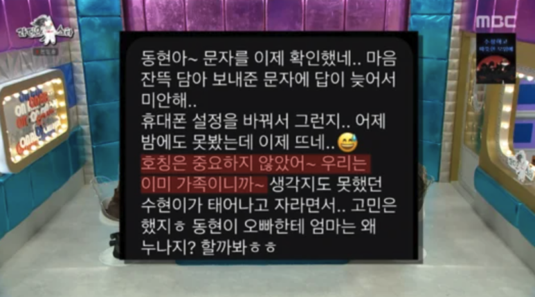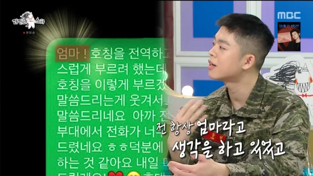 군 복무를 마치고 돌아온 그리(김동현)가 전역과 동시에 새어머니를 향한 호칭을 바꿨다는 따뜻한 이야기를 전했다.