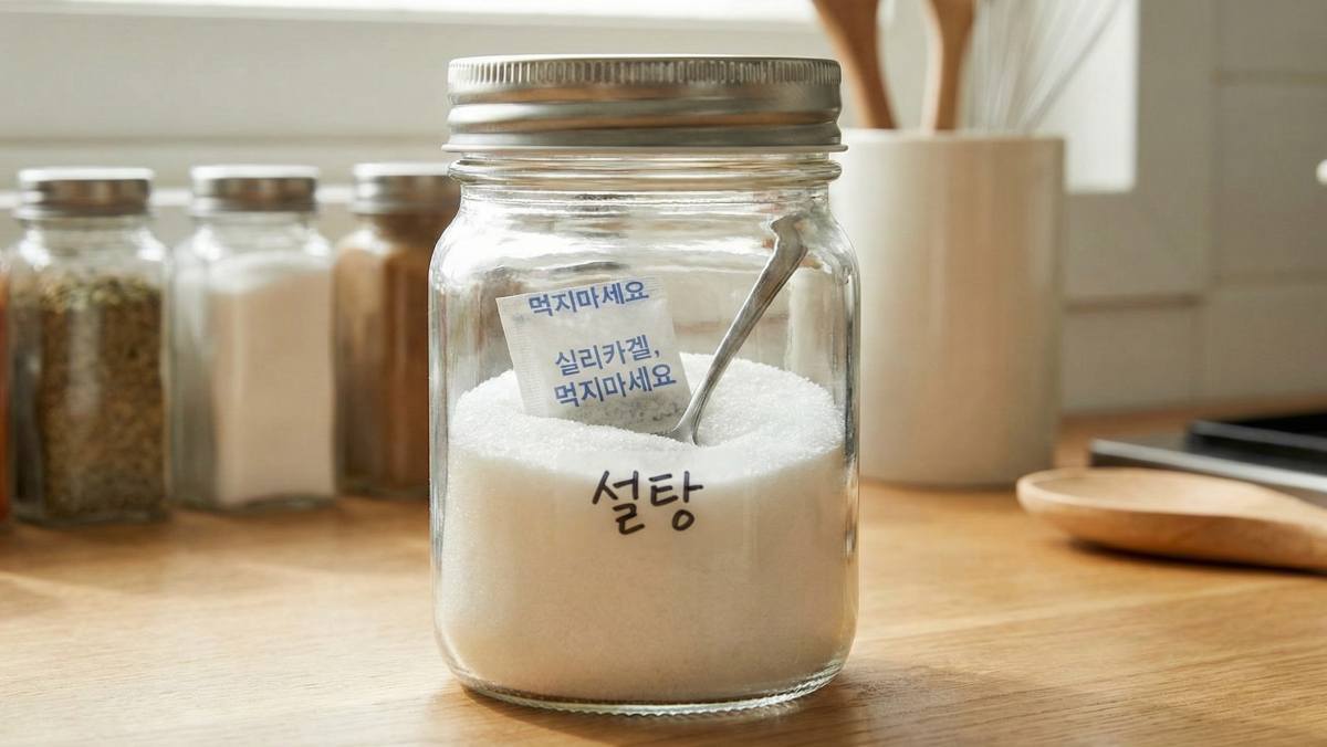 방습제는 양념을 부드럽게 만드는 약이 아니라, 물기를 미리 차단해 상태를 유지해주는 ‘방패’ 역할을 하기 때문이다. 따라서 양념을 새로 사서 통에 담을 때 미리 방습제 한두 개를 넣어두는 습관을 들이는 것이 가장 좋다.