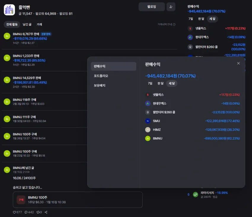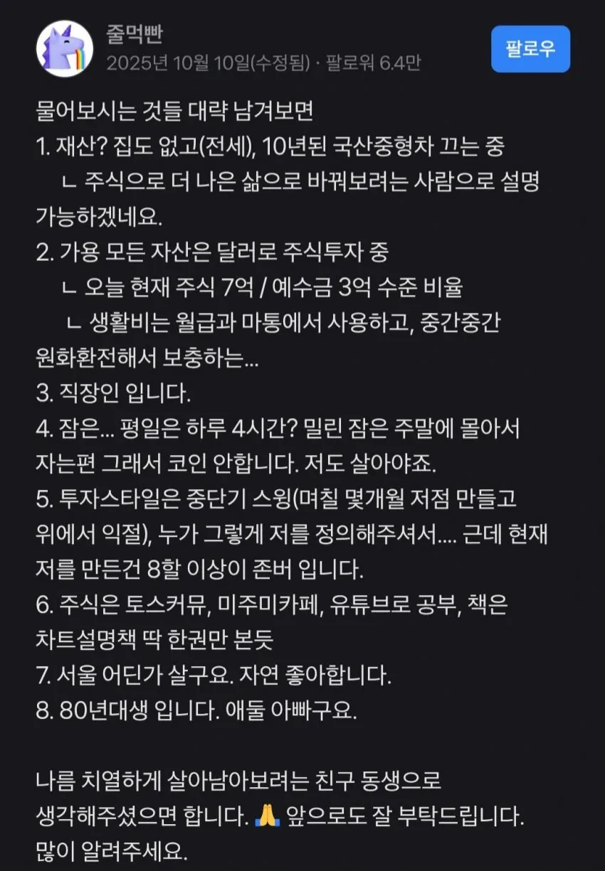 이더리움 관련 기업인 비트마인에 전재산 10억원 투자해서 9억 5천만원 잃음토스에서 인플루언서로 유명했는데, 결국 오늘 조용히 손절함 전재산 잃은 40대 가장이 1년전에 작성한 글 청설모를 위해 머핀을 만들어준 사람전남친 최후의 일격비누로 씻지 말라는 와이프돌아가신 아버지의 지인들께 내 결혼식 알리려고하는데애가 변기에 화장품 넣어서 칭찬해줬어