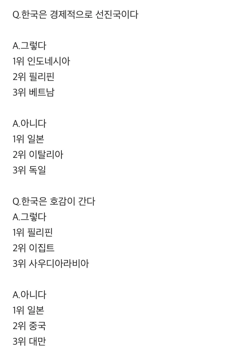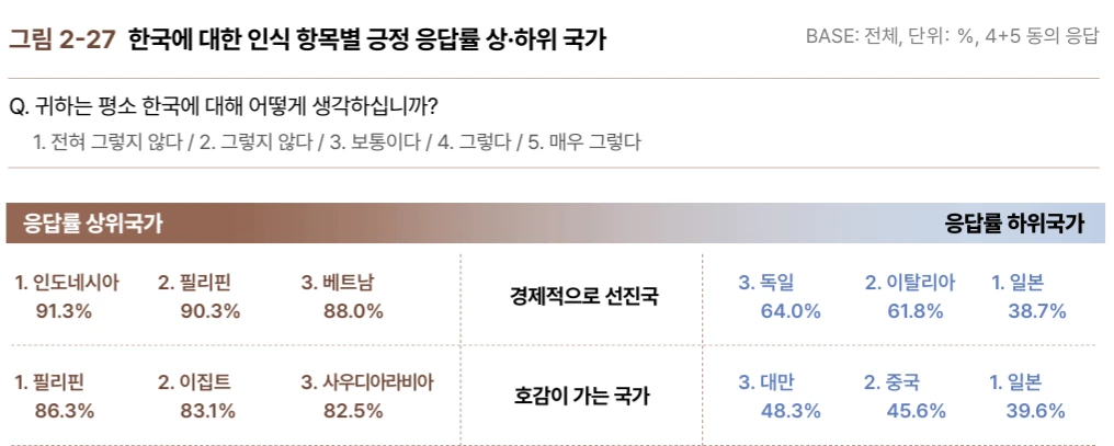 한국을 좋게 보는 나라 / 나쁘게 보는 나라 순위