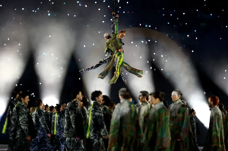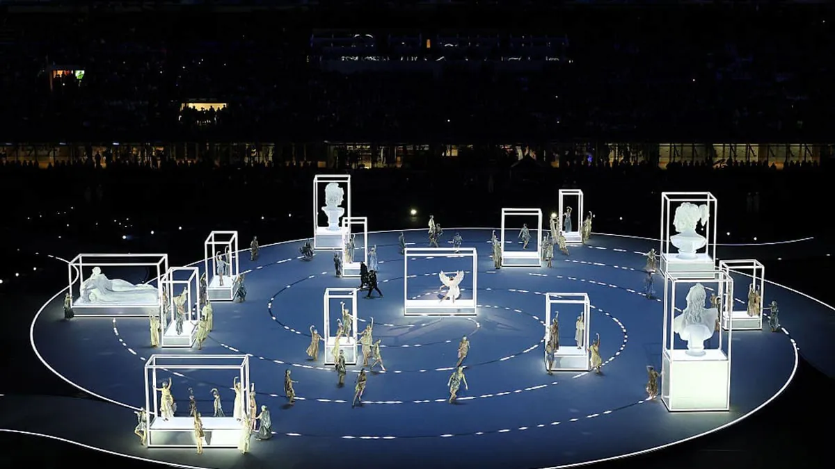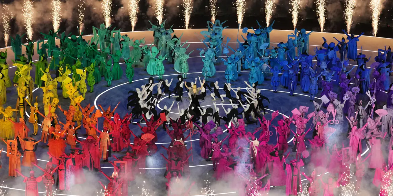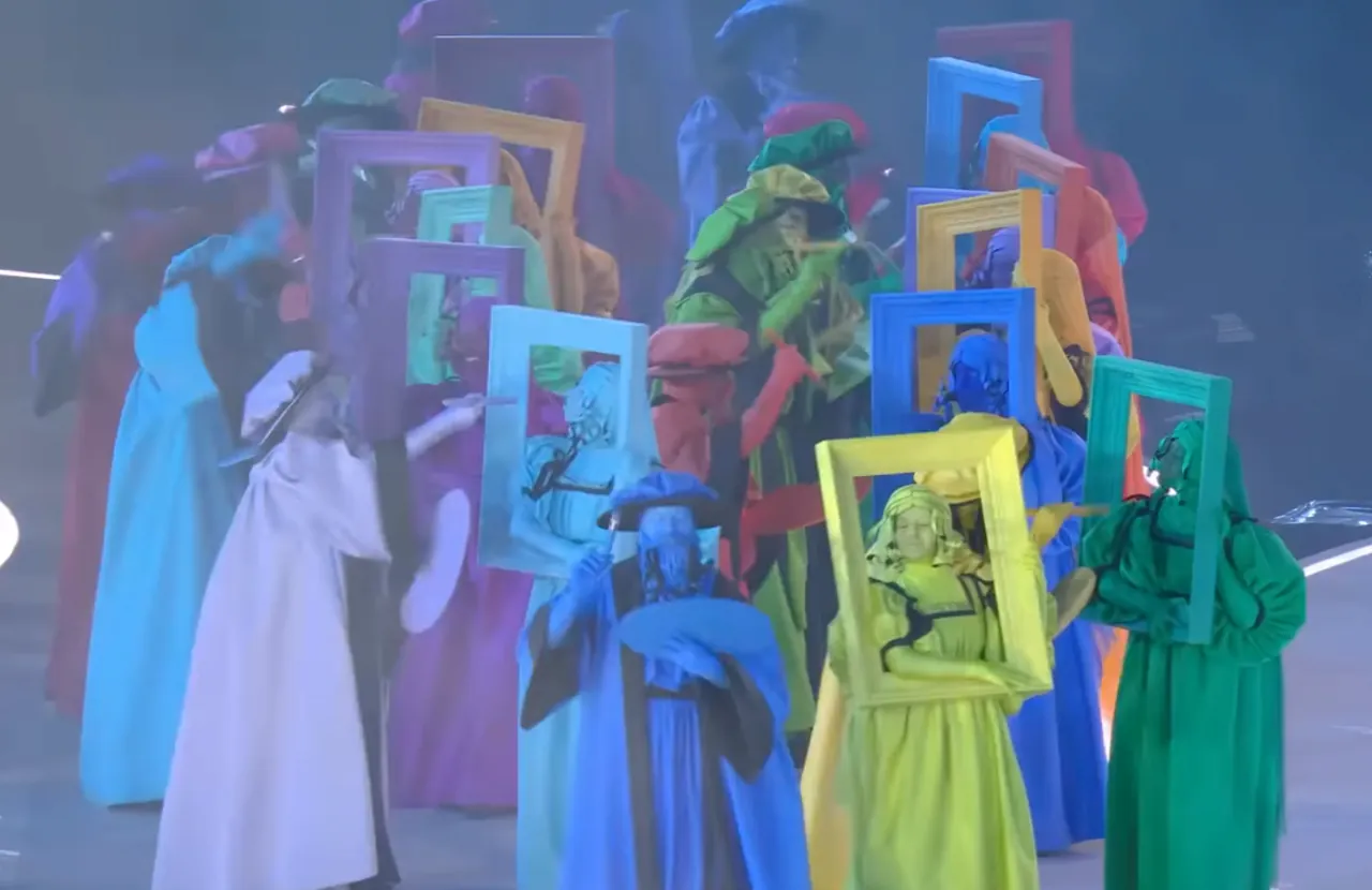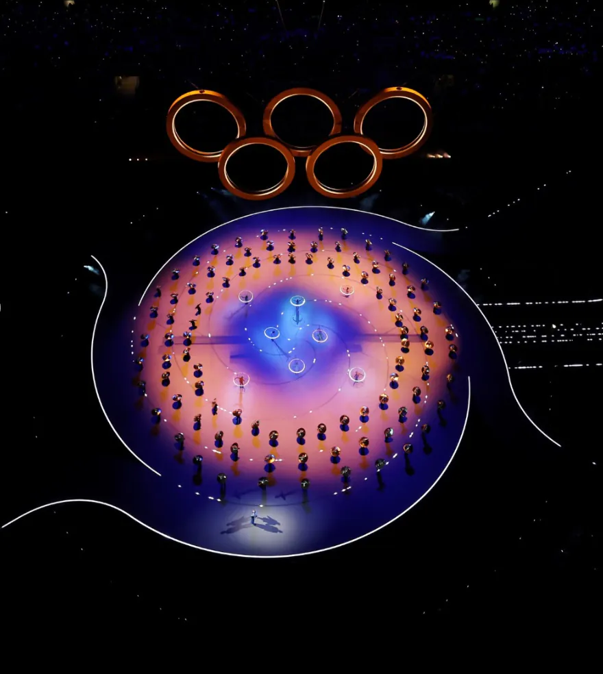 도시와 산을 은유하는 무용수들이 무대에 들어선다이탈리아에는 수많은 손동작 제스쳐들이 있는데, 배우 브렌다 로디자니가 방송사고를 가장해 이를 재치 있게 설명한다경기장으로 두 성화 봉송 주자가 들어온다월드컵 우승 멤버이자 양 밀란의 레전드 주세페 베르고미와 프랑코 바레시