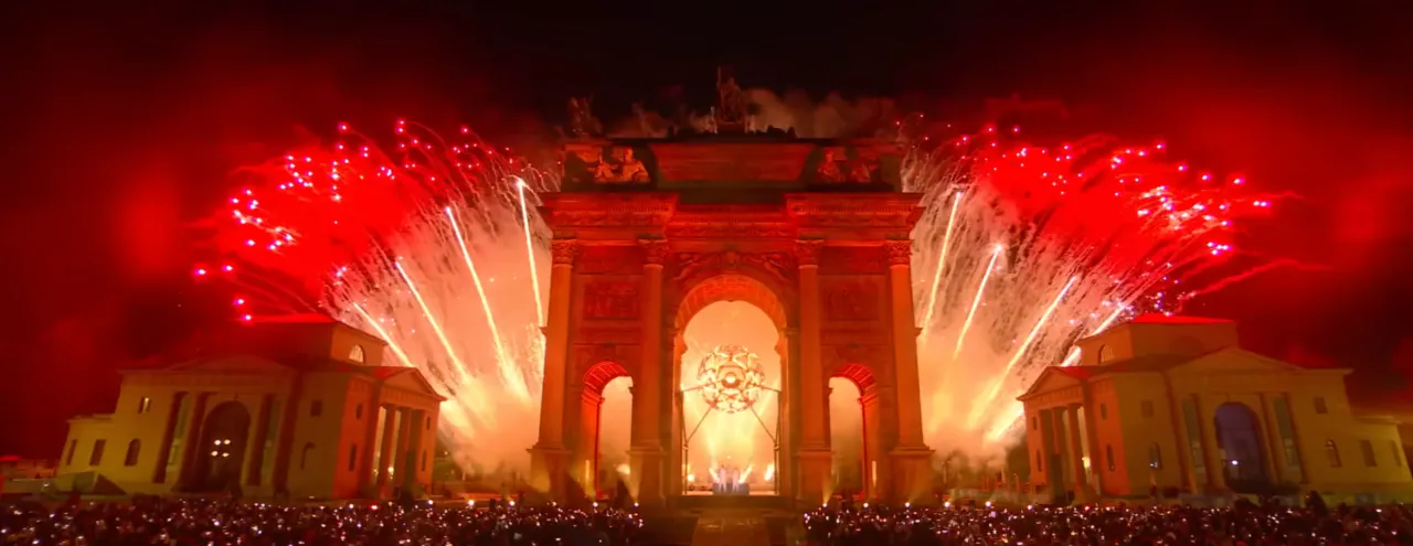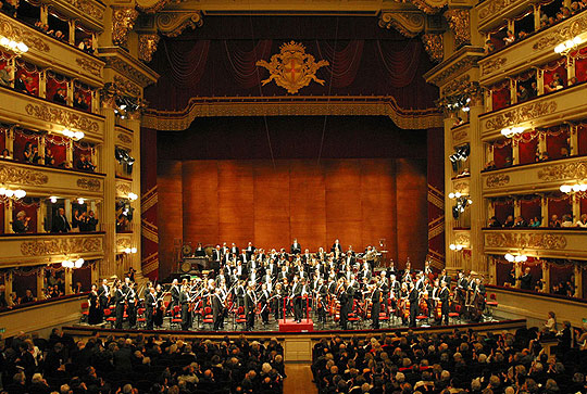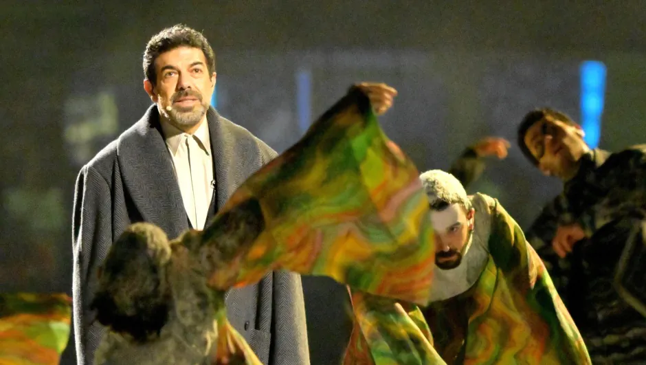 푸치니, 로시니, 그리고 베르디대표작 「투란도트」, 「나비 부인」 대표작 「세비야의 이발사」대표작 「리골레토」, 「라 트라비아타」, 「일 트로바토레」빨강색, 파랑색, 노랑색 물감이 무대 위로 흘러내린다곧이어 형형색색의 상징들이 등장한다 밀라노 대성당 (건축),피노키오 (문학), 베네치아 무도회 (문화) 이 챕터는 대중문화의 상징 '라파엘라 카라'에게 헌정되며 마무리된다.산 시로는 이탈리아 삼색을 입은 모델들의 패션쇼로 잔환된다이탈리아 패션의 거장 '조르지오 아르마니'를 기리는 런웨이 대통령 근위대 '코라치에리'에게 국기를 건넨다이탈리아의 형제들이여이탈리아가 깨어났도다스키피오의 투구가그녀의 머리 위에 씌워졌도다승리의 여신은 어디에 있는가?그대의 머리를 숙이라하나님께서 승리의 여신을로마의 종으로 삼으셨으니...챕터 4. 도시와 산 (Citta e Montagna)'조반니 자논'의 바이올린 선율과 함께 배우 '피에르프란체스코 파비노'가 등장한다그는 시인 자코모 레오파르디의 시 「무한」을 낭송한다이 외로운 언덕은 언제나 내게 소중했고,저 울타리는 마지막 지평선의 많은 부분을 가로막고 있다.그러나 여기 앉아 바라보고 있으면나는 마음 속에서 그 너머를 본다.끝없는 공간과, 인간을 초월한 침묵,바닥없는 고요를 떠올리며그 감각은 두려움에 이를 만큼 깊어진다.그리고 이 가지들 사이로 바람이 스치는 소리를 들을 때,나는 그 끝없는 정적을 이 소리와 비교하게 된다.그 순간 영원과 지나간 계절들,그리고 지금 살아있는 현재의 계절과 그 울림이 떠오른다.그리하여 내 정신은 이 광막함 속으로 가라앉고이와 같은 바닷속에서 표류하는 일은 달콤하다.