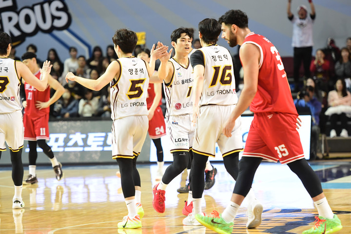 ‘유기상 외곽포 폭발’…LG, 정관장 따돌리고 선두 굳히다