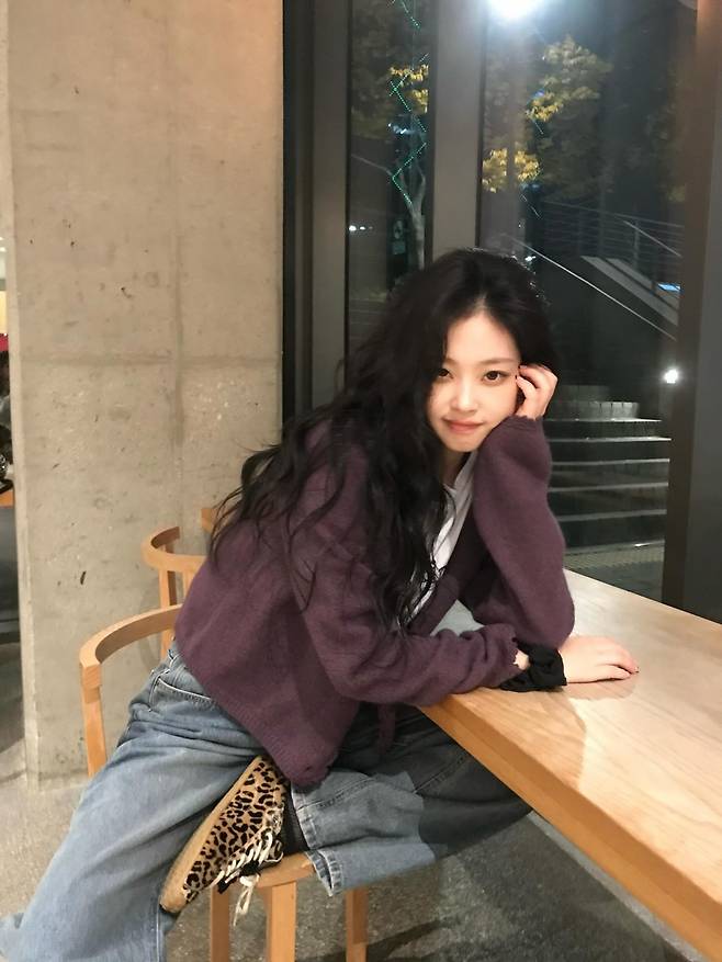 여유로운 핏의 와이드 데님 팬츠를 선택해 활동적인 느낌을 주면서도, 강렬한 레오파드 패턴의 퍼 슈즈를 착용해 자칫 평범할 수 있는 룩에 확실한 반전 포인트를 주었습니다.
