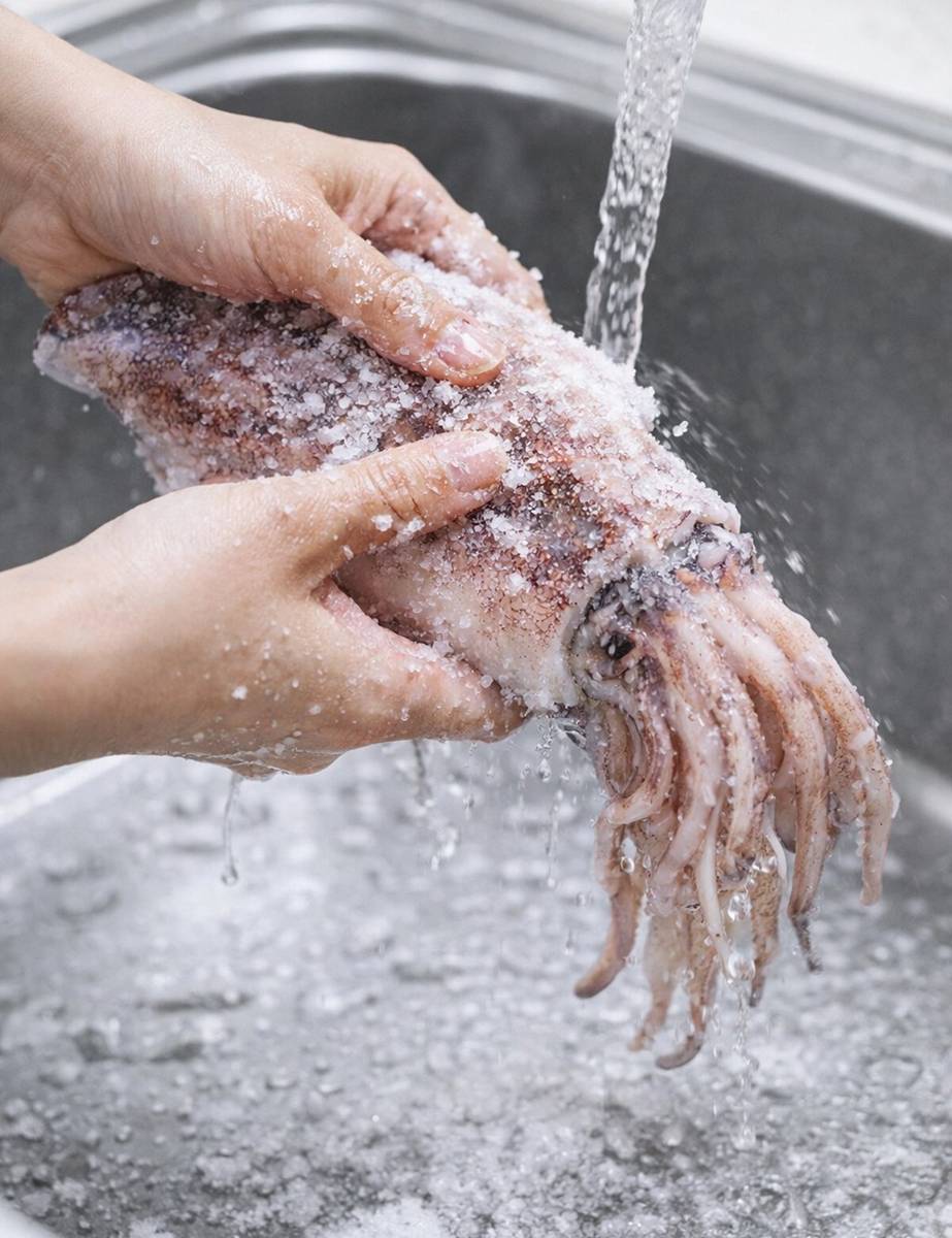 영상에서 유튜버는 “어제 아는 선장이 오징어 정말 맛있게 먹는 방법을 알려주더라”며 “오징어에 소주 반병을 붓고 삶으면, 인생 오징어가 된단다”라고 전했다. 방법은 의외로 단순하다. 냉동 오징어를 해동한 뒤 내장을 제거하고, 입과 눈을 떼어낸다. 소금을 뿌려 문질러 세척한 뒤 물로 깨끗이 헹군다. 이후 팬에 올려 준비를 마친다.