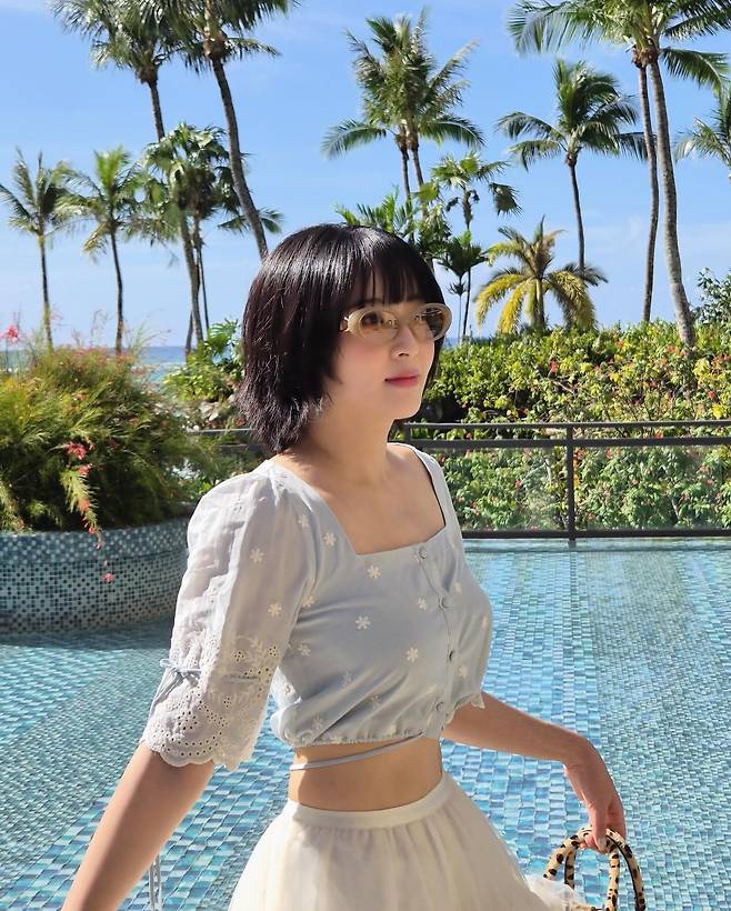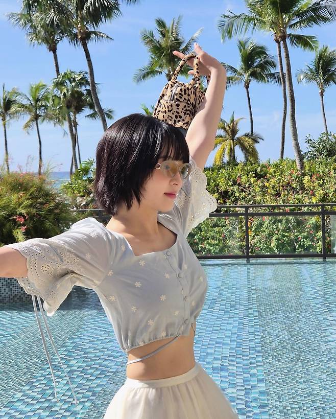 휴양지 여신 강림 정혜성, 한 뼘 크롭탑으로 완성한 역대급 리조트룩