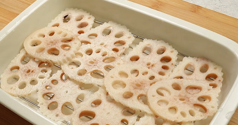 만드는 방법도 어렵지 않다. 연근은 껍질을 벗겨 3~4밀리 정도 두께로 썬다. 너무 두꺼우면 익는 데 시간이 오래 걸리고, 너무 얇으면 식감이 사라진다. 썬 연근은 물에 잠깐 헹궈 표면의 전분만 제거한다. 오래 담글 필요는 없다.