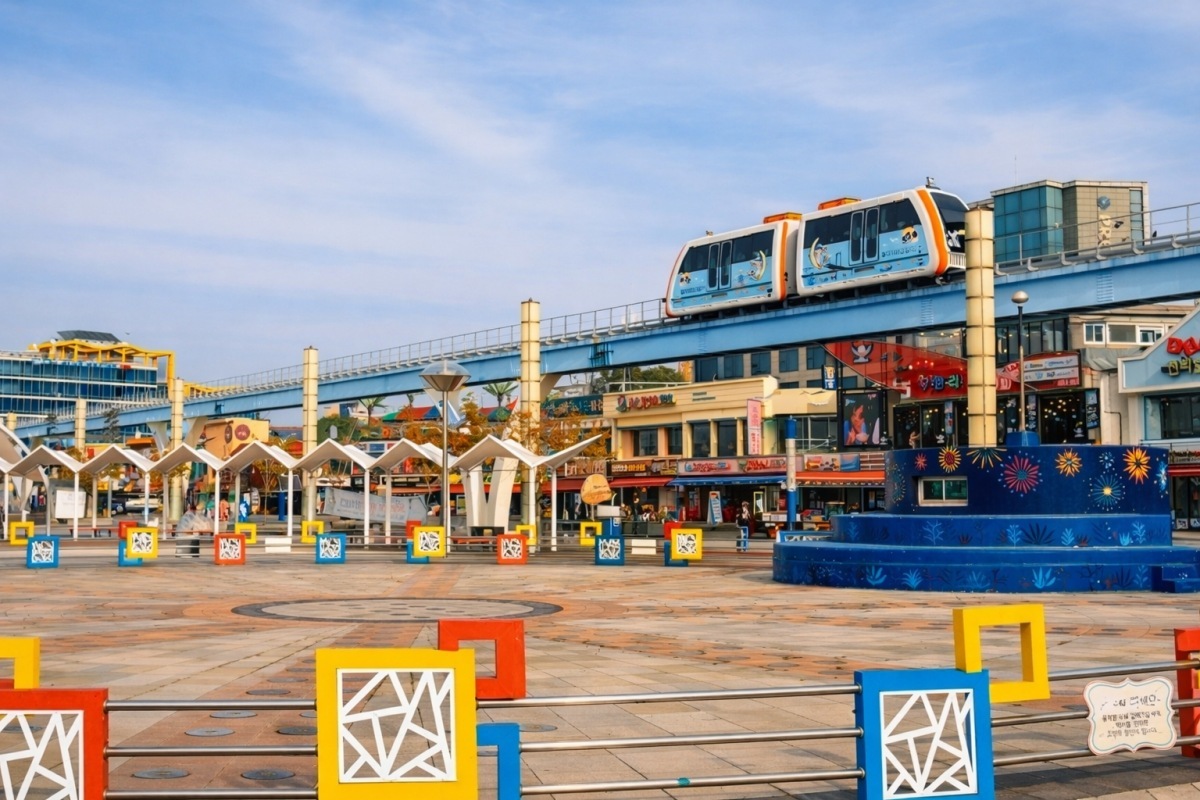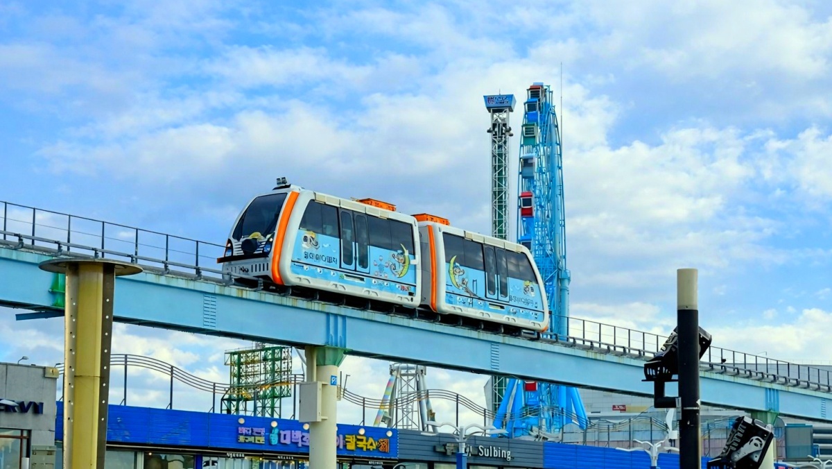 월미도 해안선을 따라 쭉 이어지는 모노레일로, 탁 트인 바다 전경을 만끽할 수 있는 이색 열차가 눈길을 끌고 있다.