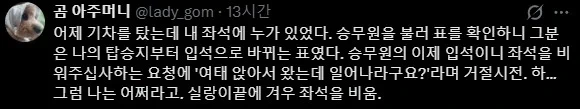 기차를 탔는데 내 좌석에 누가 앉아 있었다