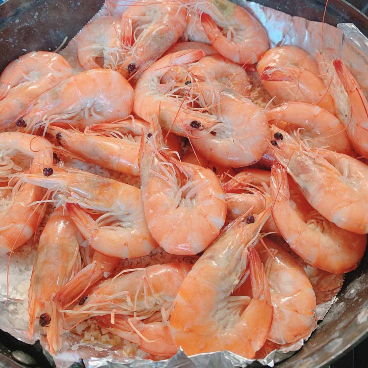 왕새우 소금구이 (1kg) 48,000원, 새우라면 5,000원