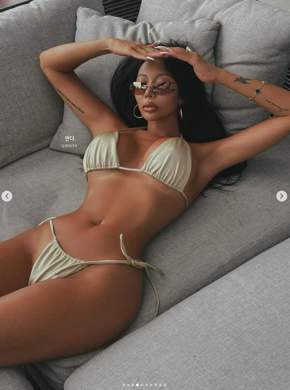 그런데 제시는 특유의 구릿빛 피부랑 너무 찰떡이라 마치 화보 한 장면을 보는 것 같았어요.