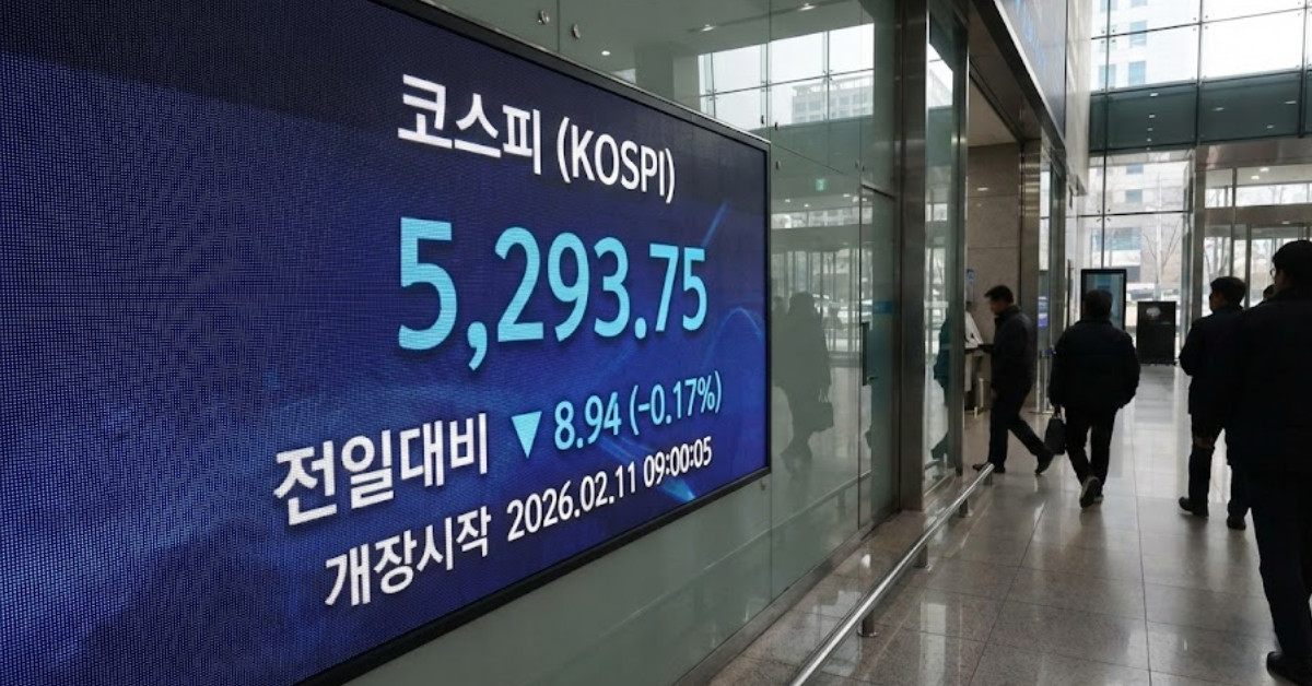 2026년 2월 11일 코스피가 숨 고르기 장세 속에서 강보합으로 문을 열었다. 전일 대비 소폭 상승하며 5300선을 지켜낸 지수는 개인과 기관의 동반 매수세에 힘입어 외국인의 매도 물량을 소화하는 모양새다. 장 초반부터 치열한 수급 공방이 펼쳐지는 가운데 역사적 고점 부근에서의 등락이 시장의 긴장감을 높이고 있다.