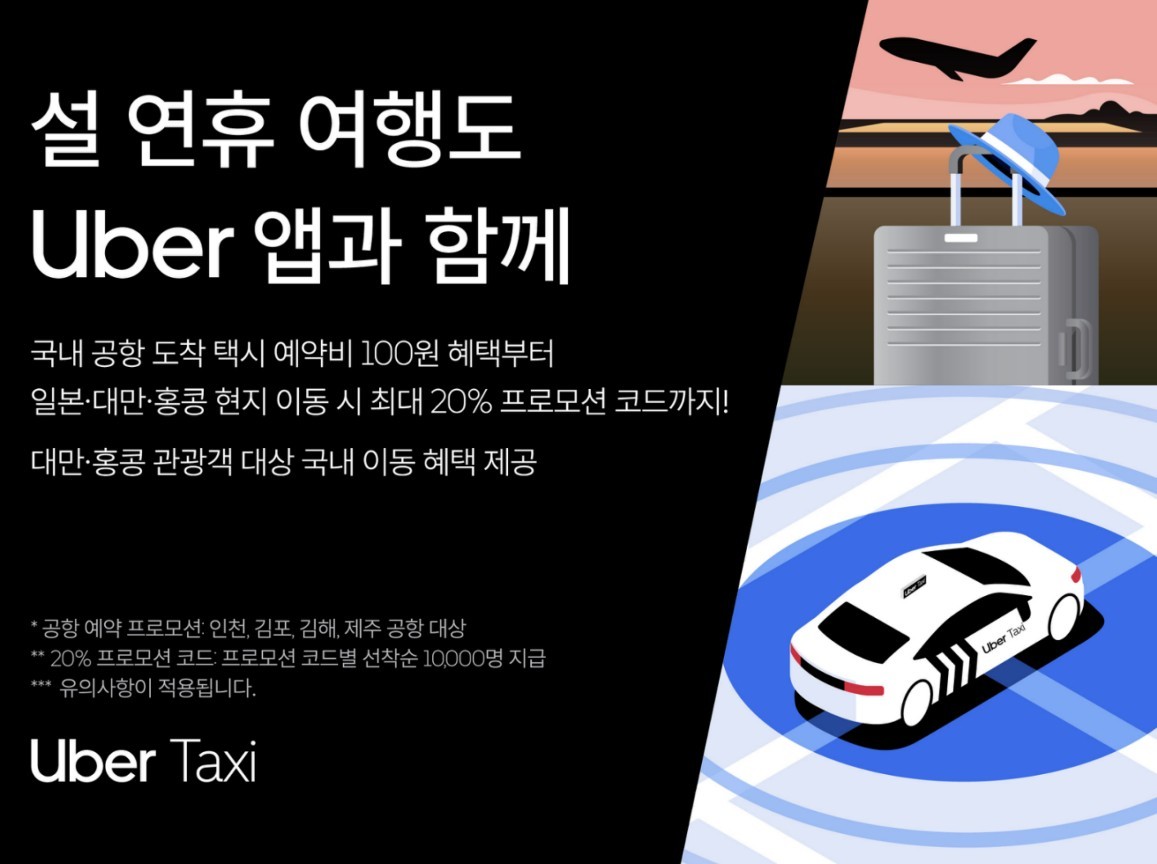 ‘우버 택시(Uber Taxi)’가 설 연휴를 맞아 국내외 관광객의 이동 편의성을 높이기 위한 특별 프로모션을 진행한다.