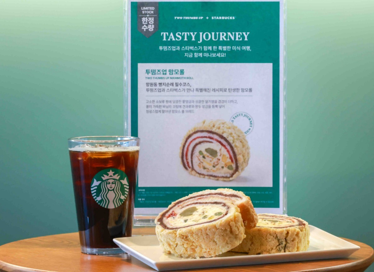 테이스티 저니 신메뉴인 ‘맘모롤’은 고소한 소보루 빵에 달콤한 팥 앙금과 상큼한 딸기 잼을 겹겹이 더하고, 풍미 가득한 바닐라 크림에 완두 앙금, 견과류를 넣어 말아낸 맘모스 롤 브레드다. 투떰즈업이 자체 개발하고 특허까지 출현한 상품으로 희소성이 높아 더욱 인기가 많다. 스타벅스는 기존 투떰즈업 맘모롤 고유의 맛과 형태는 유지하되, 커피와 잘 어울릴 수 있도록 식감은 부드럽게, 당도는 낮게 조절했다.