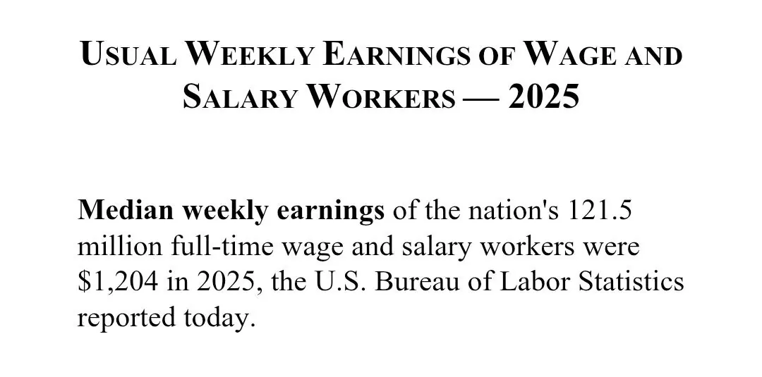 2025년 미국인들의 중위소득은 직종에 따라 다르지만 전국 중위기준 주급 1204불