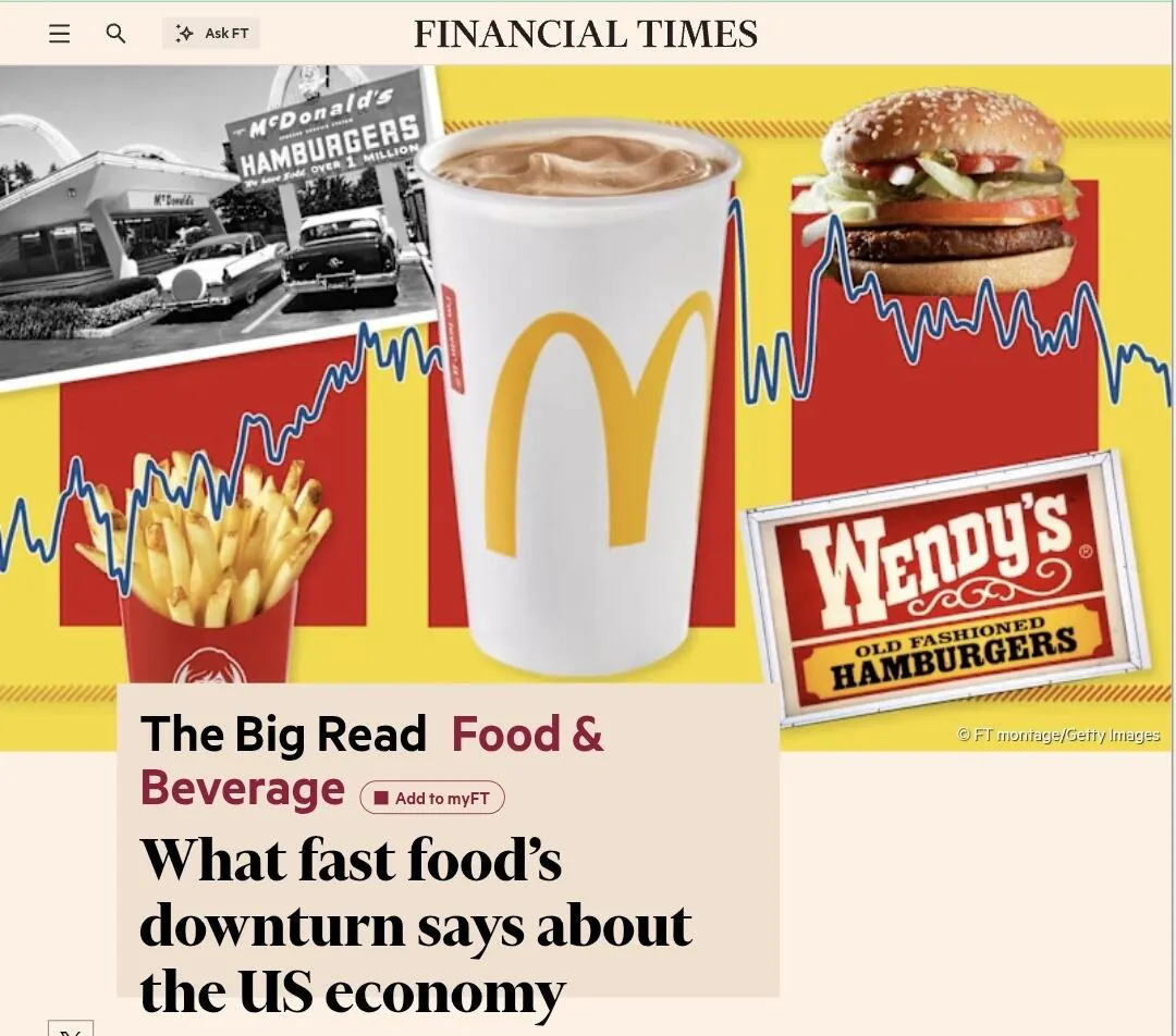 서민과 중산층이 즐겨먹던 패스트푸드는 너무 비싸져서 망하는데 오히려 반대로 너무 비싸고 고급이라서 또 성공하는 극단적 양극화를 달리고 있고 이게 바로 미국 gdp와 패스트푸드 산업의 괴리를 설명.