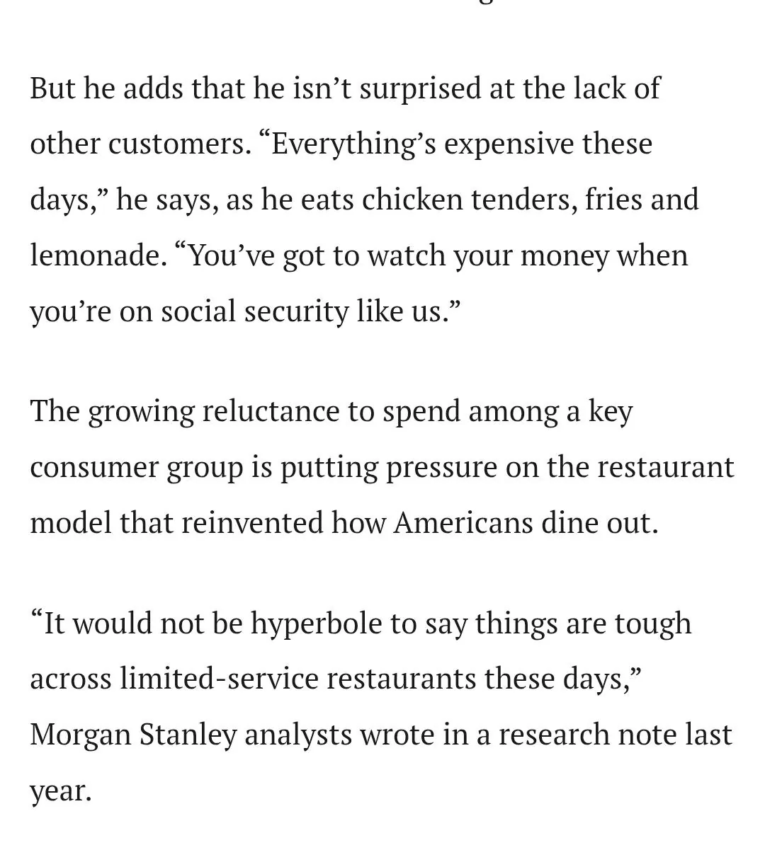 그와중 반대로 매~우 잘되는게 있는데 한끼에 수십만원하는 파인다이닝 외식 산업임. 왜냐면 패스트푸드와 달리 파인 다이닝의 주 고객층은 저런 일반적인 미국인들이 아니거든.주로