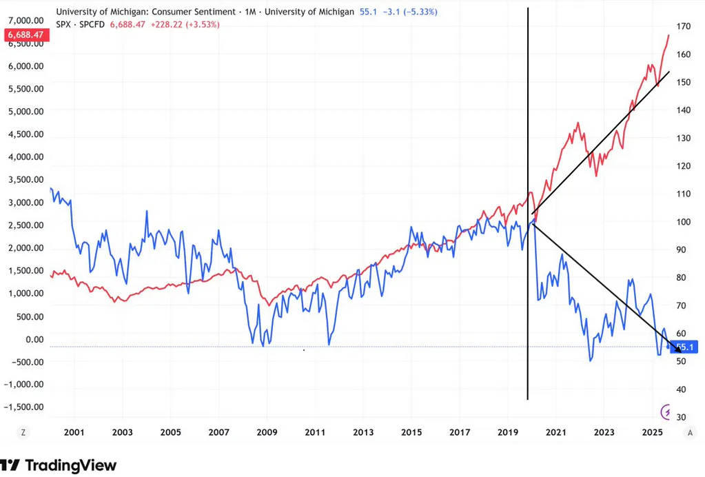 [ 2008년 금융위기 이상으로 악화된 미국 체감 소비 지수 ]