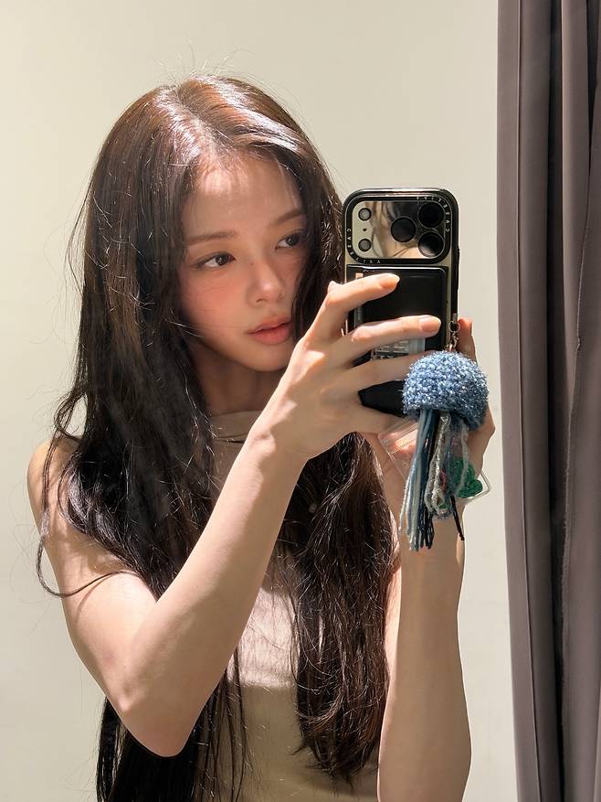 별다른 액세서리 없이도 의상 자체의 소재감과 디테일만으로 풍성한 실루엣을 완성한 것이 이번 코디의 핵심 포인트예요.