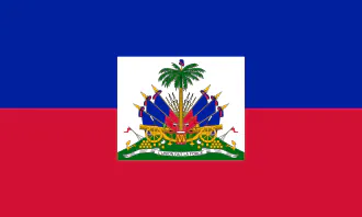 국기는 파란색과 빨간색이 들어가 있는 2색기(bicolor flag)에 아이티의 국가 문장을 넣은 형태입니다.