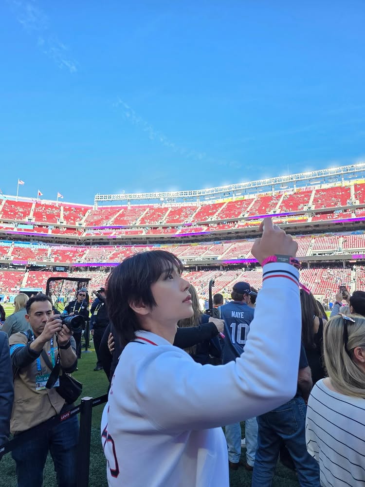 조슈아는 최근 미국 캘리포니아주 샌타클래라 리바이스 스타디움에서 열린 제60회 슈퍼볼 행사에 참석해 글로벌 스타들과 어깨를 나란히 했다. 이날 그는 흰색 재킷과 검은 조끼, 스트라이프 넥타이를 매치한 세련된 패션으로 현장의 이목을 집중시켰다. 경기장과 관중석을 배경으로 한 사진에서는 엄지손가락을 치켜세우며 환한 표정을 짓는 모습도 포착돼 팬들의 뜨거운 반응을 얻었다.