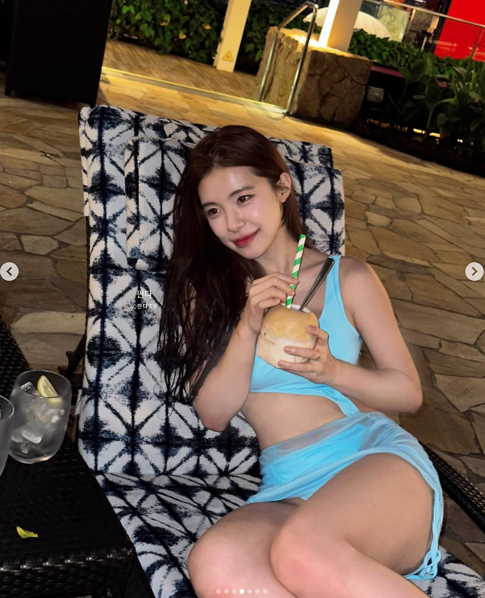 이다혜 님은 "OK LAH"라는 귀여운 문구와 함께 절개 디테일이 돋보이는 하늘색 비키니 자태를 공개했습니다.