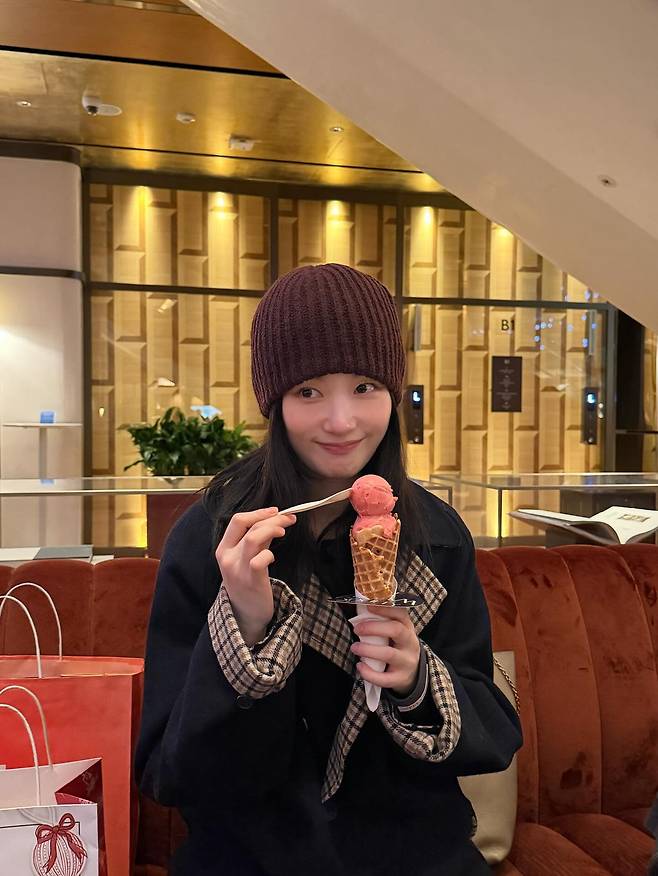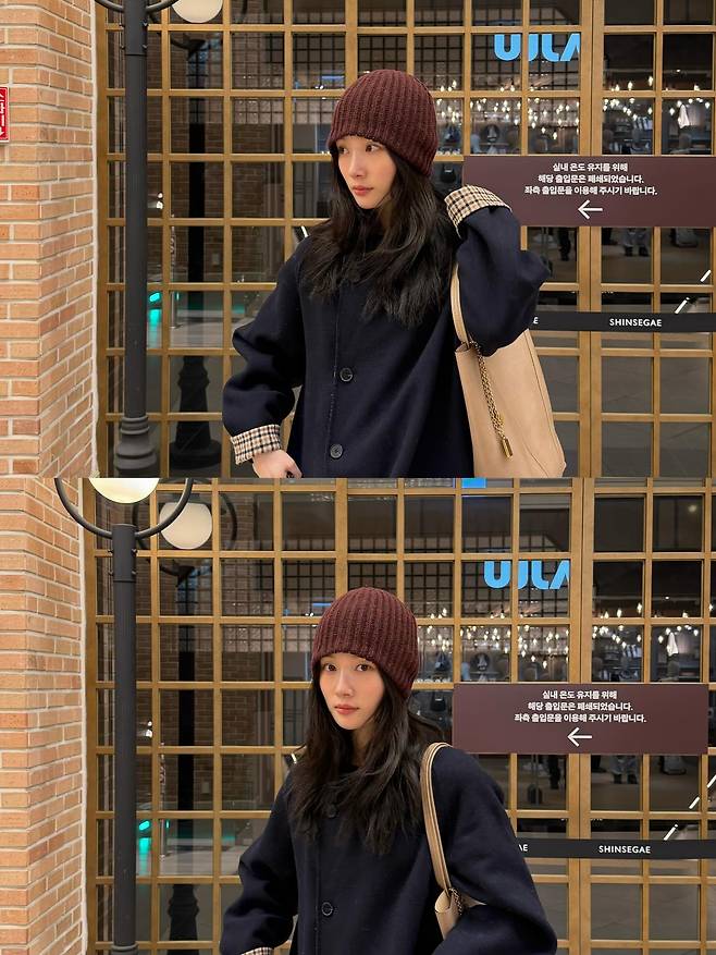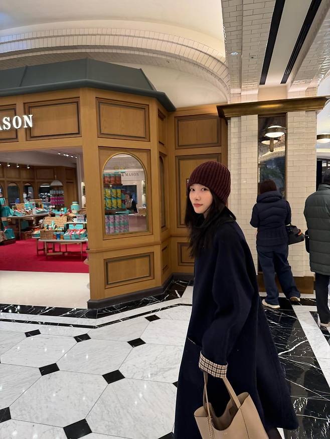 정채연은 클래식하면서도 귀여운 포인트가 살아있는 윈터 룩을 선보였어요.