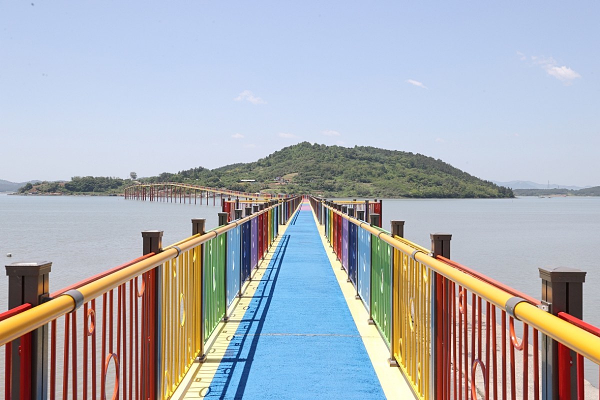 다리의 난간과 바닥면을 무지개 색상으로 도색하여 시각적인 즐거움을 주며, 보행자 전용 교량으로서 바다 위를 안전하게 산책할 수 있는 환경을 갖춘 것이 특징이다. 다리 초입과 중간에는 아기자기하게 꾸며진 포토존이 마련되어 방문객들이 다양한 색감을 배경으로 감성적인 사진을 남길 수 있다. 특히 해 질 녘 일몰 시간대에 맞춰 방문하면 붉게 물든 노을과 무지개색 다리가 어우러지는 경관을 감상할 수 있어 사진작가들과 관광객들에게 인기가 높다. 다리 중간에는 이용객들의 편의를 위한 쉼터와 주변 경치를 조망할 수 있는 전망 포인트가 적절히 배치되어 여유로운 탐방을 돕는다.