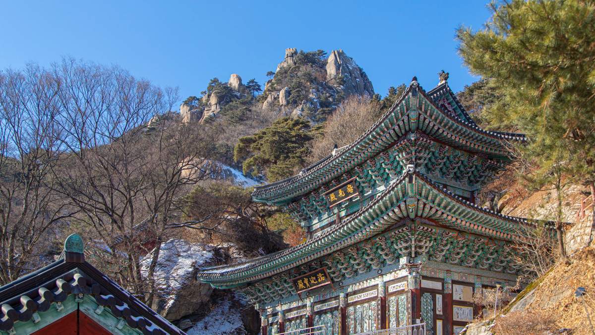 산 중턱의 가파른 지형을 따라 세워진 망월사는 전각들이 계단 사이에 흩어져 배치된 독특한 구조를 지닌다. 덕분에 발길을 옮길 때마다 달라지는 풍경을 감상하는 즐거움이 크다. 특히 눈이 내린 뒤 범종각에 올라서면 하얀 눈을 머금은 영산전의 기와지붕과 그 아래로 펼쳐지는 의정부 호원동 일대, 그리고 맞은편 수락산의 설경이 어우러져 장관을 이룬다. 눈꽃이 핀 나뭇가지 사이로 스며드는 산사의 정취는 마치 다른 세상에 들어선 듯한 몰입감을 준다.