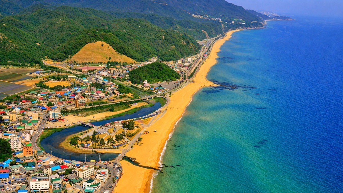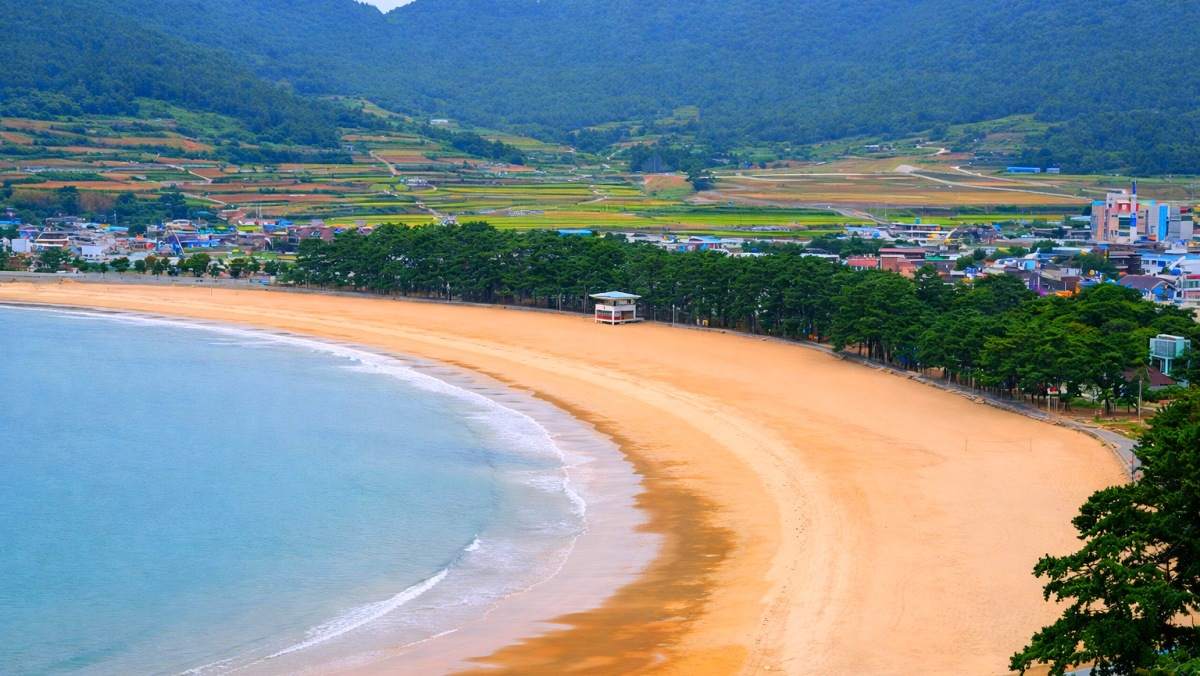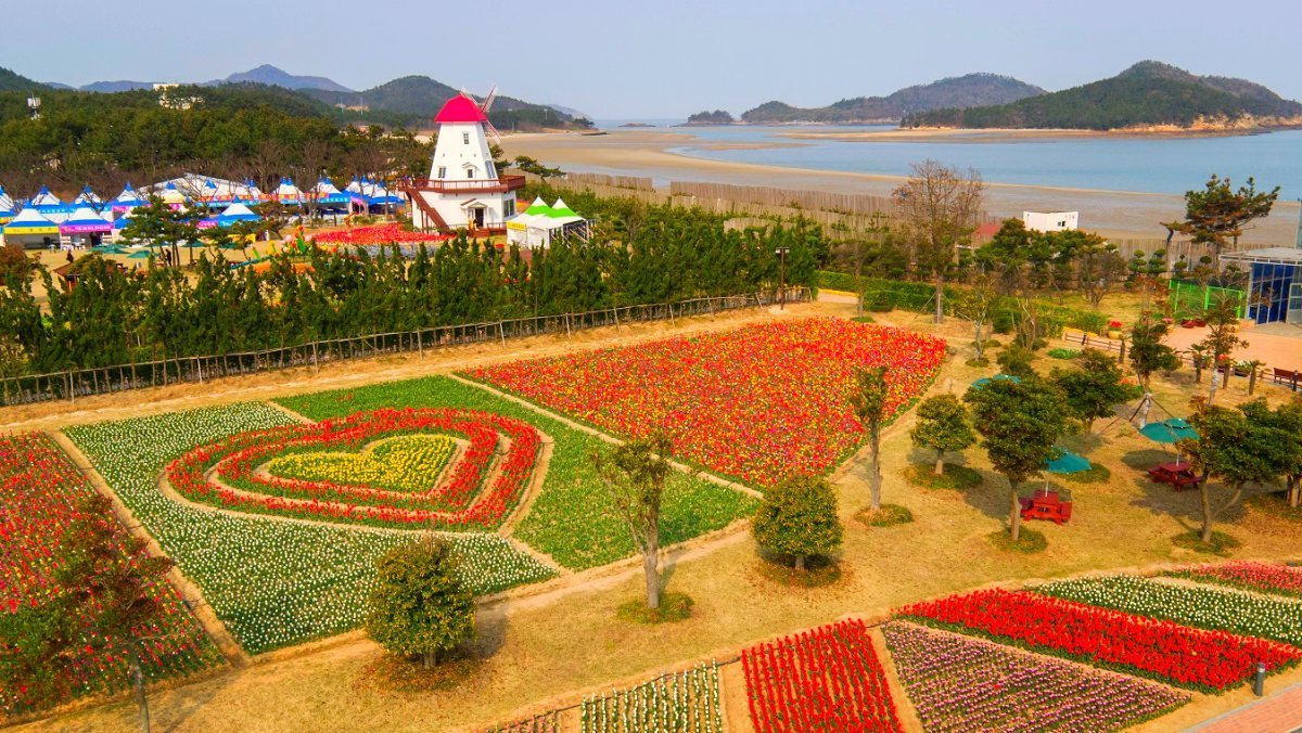 백사장 길이가 약 12km에 달해 서해안에서 가장 길다고 알려진 해수욕장이 있다. 매년 봄이 되면 튤립이 해변 인근을 물들여 '한국의 네덜란드'라고도 불린다.