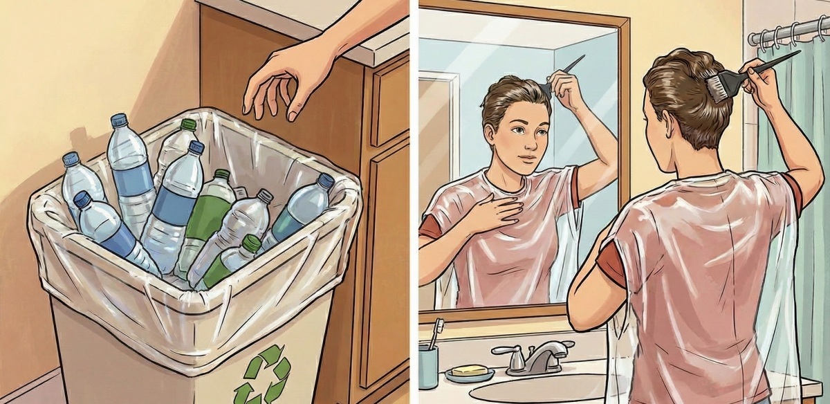 가정에서 염색을 할 때 '오염 보호용 가운'처럼 활용하는 방법도 있다. 셀프 염색을 하다 보면 염색약이 옷에 튀는 경우가 적지 않다. 세탁소 비닐의 구멍을 조금 더 넓혀 얼굴이 들어갈 정도로 만들고, 양옆을 살짝 트면 팔을 움직이기 편하다. 간이 보호복처럼 사용할 수 있어 의류 오염을 줄이는 데 도움이 된다. 일회용 비닐가운을 따로 구입하지 않아도 된다는 점에서 실용적이다.