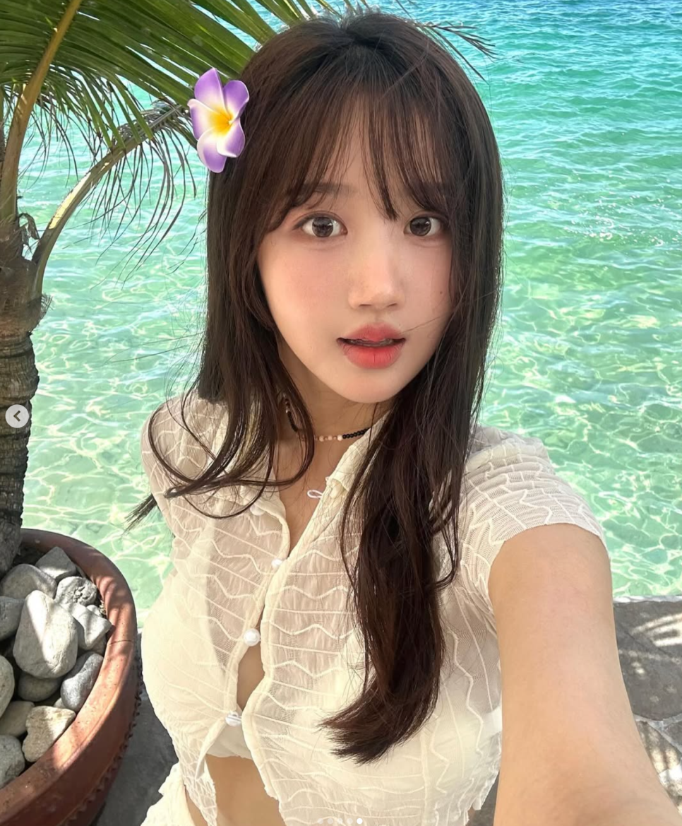 아이보리 톤의 브라렛 비키니에 레이스 스커트를 더한 스타일링 역시 그녀의 청초한 매력을 극대화하며 '청순 글램'의 정석을 보여주었다는 찬사를 받았습니다.