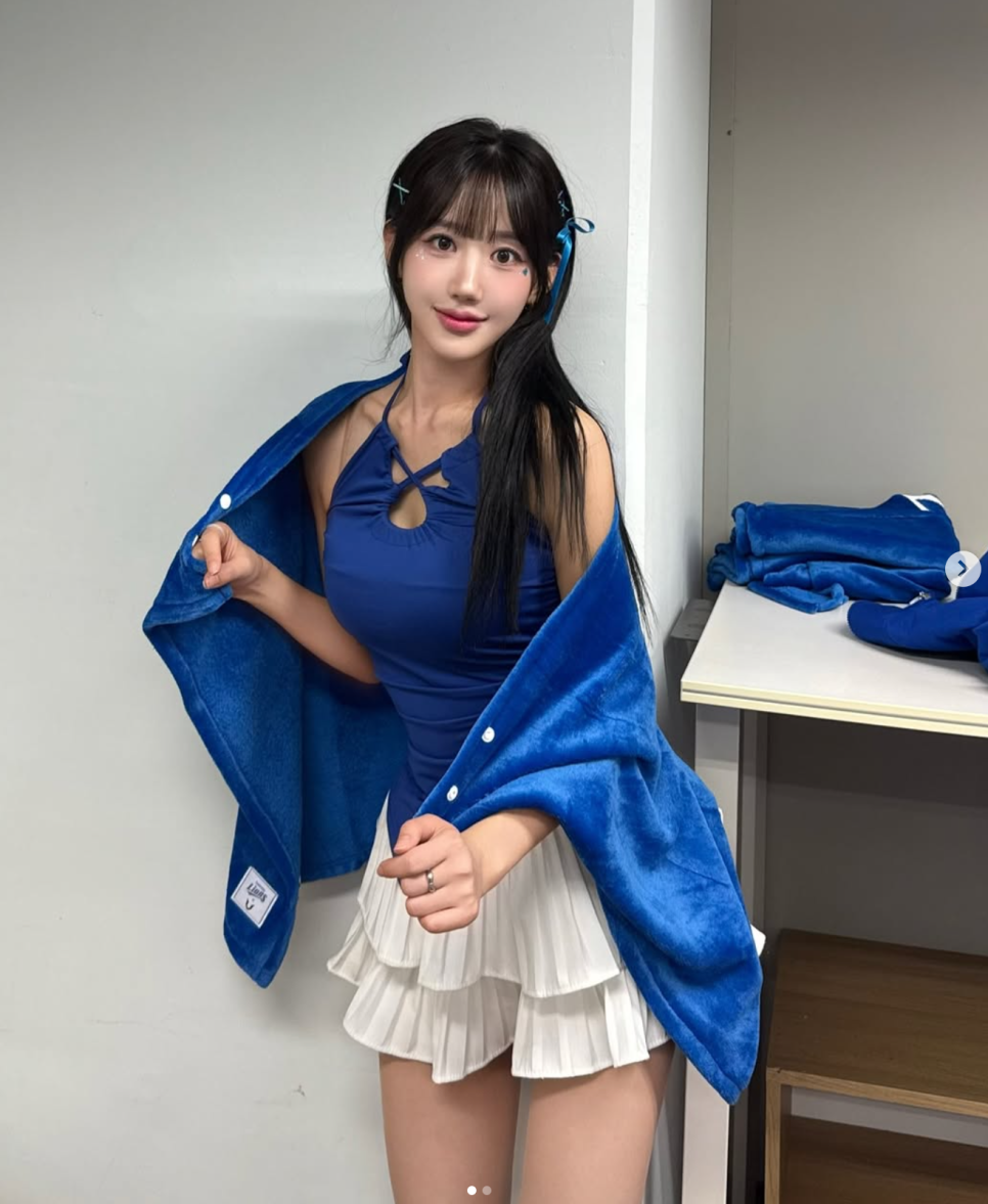 팬들 사이에서 과즙미 넘치는 비주얼로 화제가 된 오서율 치어리더 비키니 룩은 한 가지 이미지에 국한되지 않는 것이 특징입니다.